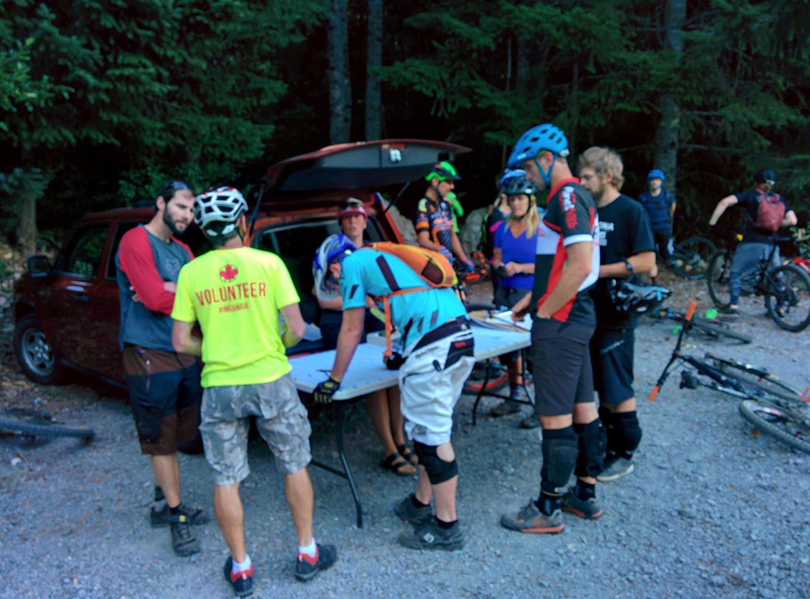 Después de descansar del palizón mañanero por la tarde tocaba mi primera Toonie Race. Estas son carreras que organiza el club o asociación local WORCA(Whistler Off Road Cycling Association) que son además la principal comunidad tras el impresionante trabajo que hay detrás de la vasta red de senderos tan bien mantenidos de la zona. Además de mirar por el mantenimiento de los senderos también organizan eventos de todo tipo. Uno de ellos es una serie de carreras no competitivas que hacen cada jueves. No competitivas porque no hay un podio final ni premios. Son carreras patrocinadas por locales de la zona, usualmente restaurantes y cafeterías en los que al final del evento puedes tomarte una birra y comerte un tentepié. En el caso de hoy por ejemplo, fue una hambuerguesa muy buena y una jarra de cerveza a escoger entre varios tipos.